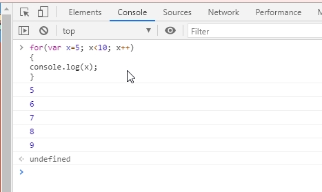 - for문을 실행하면 var x=5가 실행된다. 즉 x에 5가 할당된다. 이 변수 선언문은 딱 한 번만 실행된다.